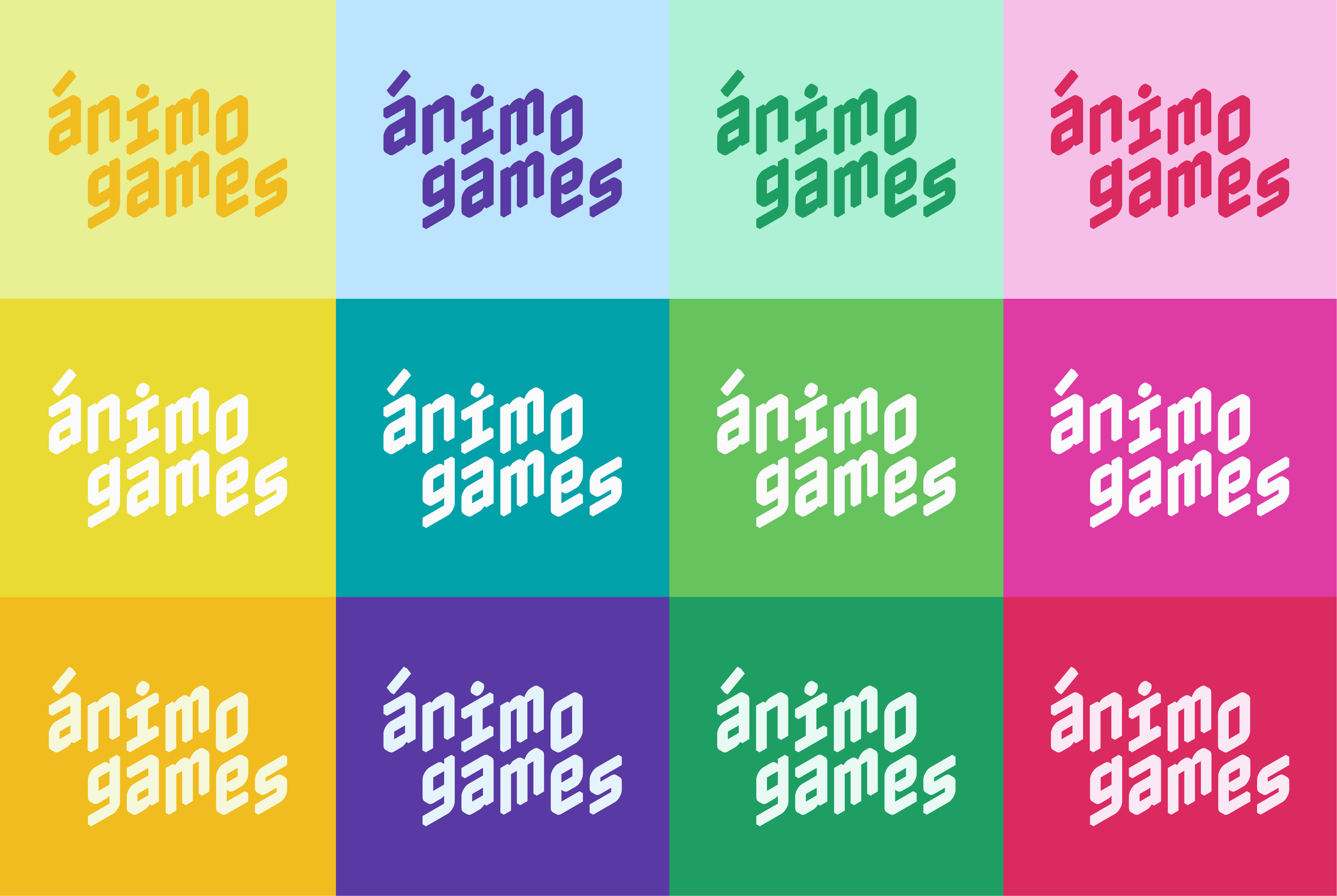 Ánimo Games is an independent game studio creating "thinky" experiences that transform the fear of learning into the joy of discovery, requiring a complete brand identity that would resonate with both gaming enthusiasts and educational innovators. The rebrand centered on the insight that how people feel about learning determines what they're capable of learning, establishing positioning as "The Endlessly Curious" with messaging that emphasizes courage-building over competition. The visual identity features a distinctive three-dimensional wordmark, a vibrant pastel-forward color palette balancing excitement with safety, and typography pairing playful forms with readability for an approachable yet sophisticated system.