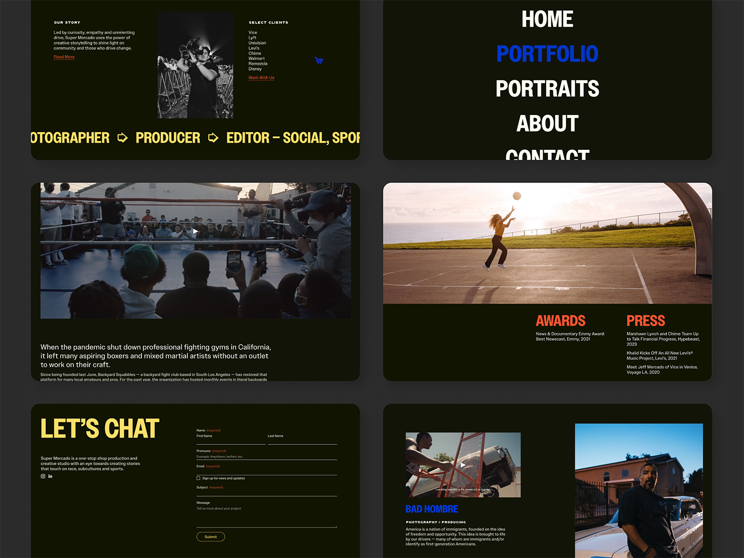 The new Super Mercado site positions Jeff as a full-service creative collaborator ready to work with brands at the intersection of sports and culture. By clarifying his offerings and simplifying how clients discover his work, the portfolio now supports his vision of building a production studio with impact-driven, high-caliber partnerships. The design gives him a platform that grows with his ambitions while staying true to the community-centered storytelling that defines his vision.